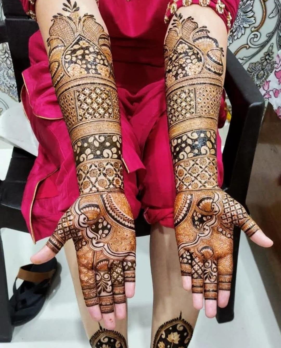 Arabic mehndi involves a mix of floral artwork along with geometric patterns, resulting in gorgeous, bold designs.