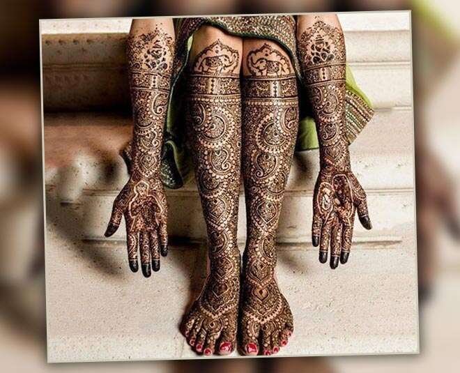 Bridal mehndi, or henna designs, are often applied in India. Mehndi, also called a henna tattoo, is a traditional temporary skin decoration using henna that is often applied for weddings in India, Morocco, or Pakistan.